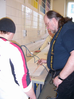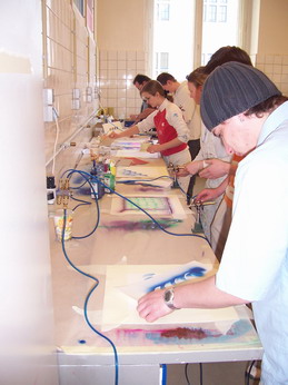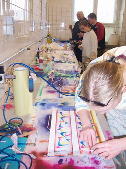 Zu allererst mussten wir lernen, die Pistole zu handhaben und Luft und Farbe zu dosieren. Es ging darum, einfache Striche zu ziehen, aber gerade! Und das war am Anfang gar nicht so einfach.