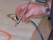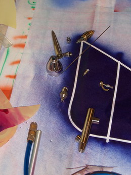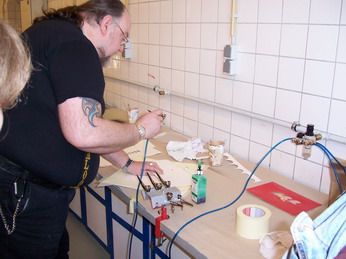 Nichts anderes bedeutet "airbrush": Eine Mini-Farb-Spritz-Pistole, mit der ganz feine dekorative Arbeiten ausgeführt werden können: Jeder kennt die Gemälde auf Auto-Karosserien oder Motorrad-Tanks. Und unser Kollege und Maler- und Lackierermeister Teitge kennt sich damit besonders gut aus.